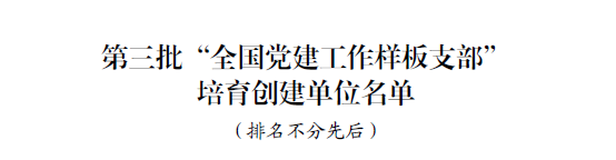 (通讯员韩鹏 编辑耿婧)近日,教育部下发了《教育部办公厅关于公布第三批全国党建工作示范高校、标杆院系、样板支部培育创建单位名单的通知》,公布了第三批新时代高公司党建示范创建和质量创优工作评审结果,遴选产生了11个全国党建工作示范高校、100个全国党建工作标杆院系、1000个全国党建工作样板支部。继公司党委入选教育部第二批全国党建工作标杆院系之后,“张国旗班”党支部在此次遴选中入选“全国党建工作样板支部”培育创建单位。