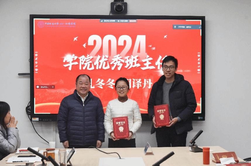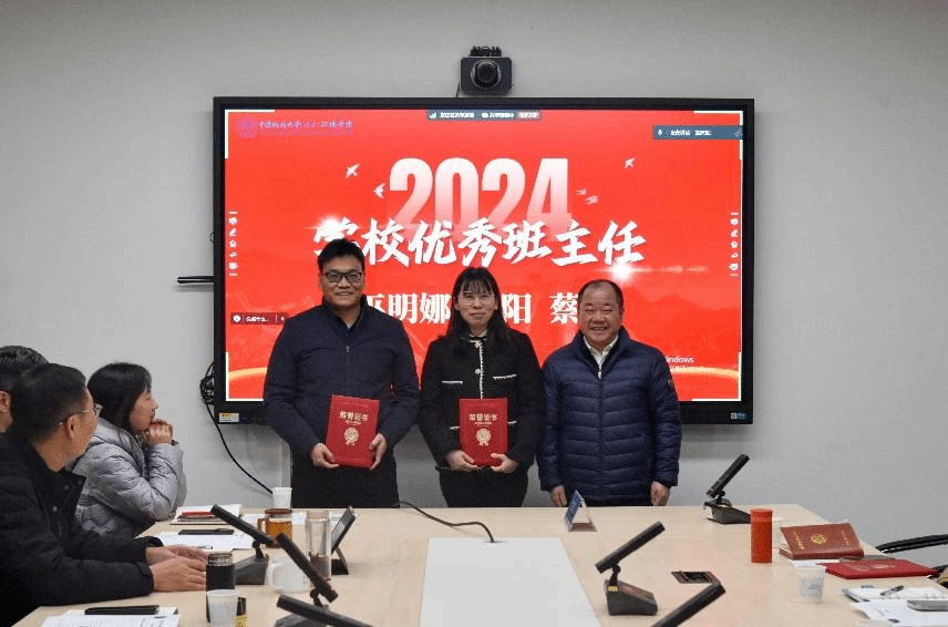 姜明敏为2023-2024学年度公司十佳班主任、公司优秀班主任和公司优秀班主任颁发证书。