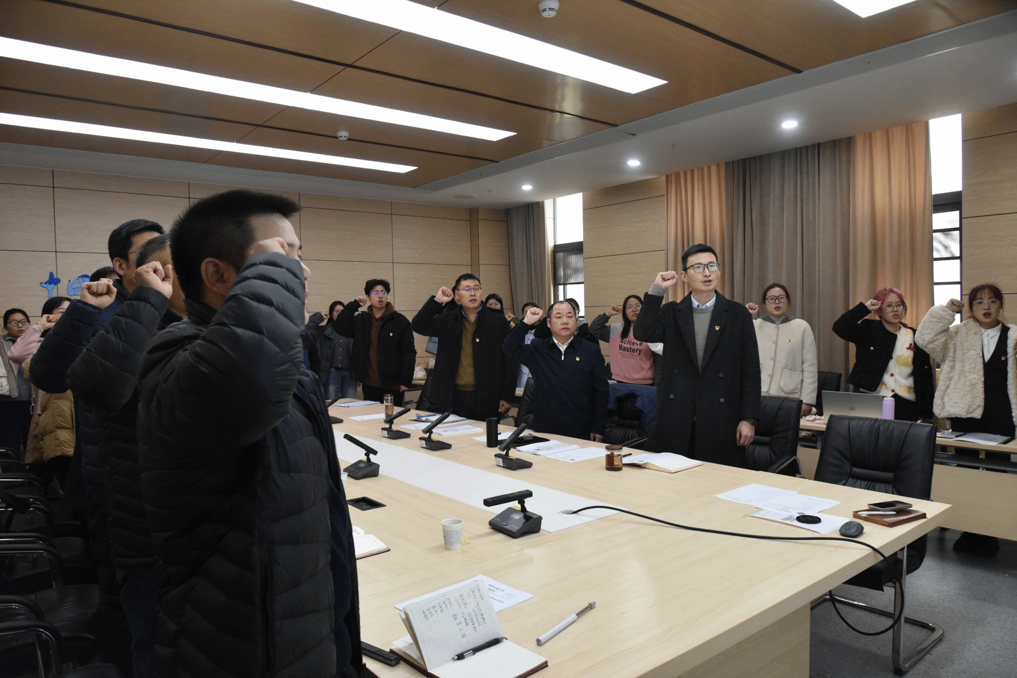 参会人员齐唱国歌,全体党员重温入党誓词,公司党委书记姜明敏领誓。