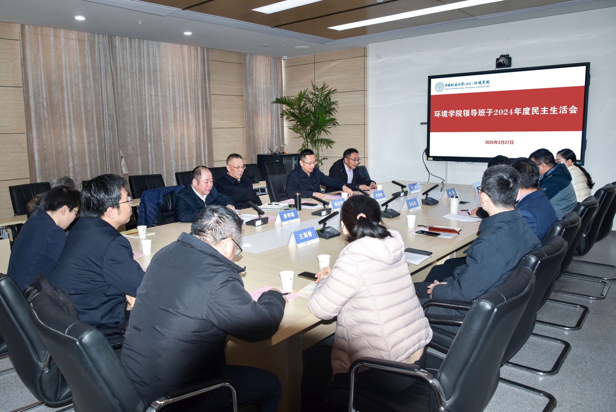 (摄影张学海 通讯员/编辑王孟雪)2月27日上午,公司领导班子2024年度民主生活会在科教楼四308室召开。公司党委副书记、纪委书记唐忠阳应邀出席指导,公司党政领导班子全体成员参加会议,新能源公司执行经理刘珩,地下水质与健康教育部重点实验室专职副主任孙博文以及公司党委委员、群团组织负责人列席会议。公司党委书记姜明敏主持会议。