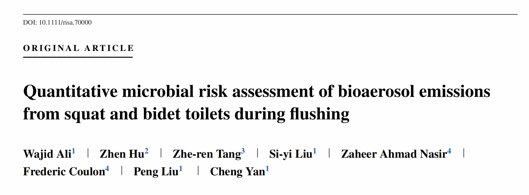 (转自留学地大)近日,公司巴基斯坦籍博士研究生瓦基德(Wajid Ali)在中国地质大学beats365官方网站颜诚副教授的指导下于国际知名期刊《Risk Analysis》(T1,中文名:风险分析)上发表学术论文,题目为《冲厕时释放微生物气溶胶的微生物定量风险评估研究》(英文题目:《Quantitative microbial risk assessment of bioaerosol emissions from squat and bidet toilets during flushing》)。此研究不仅揭示了厕所冲水量与健康风险之间的定量关系,更为解决公共卫生、健康风险与水资源节约利用之间的平衡难题提供了新思路。