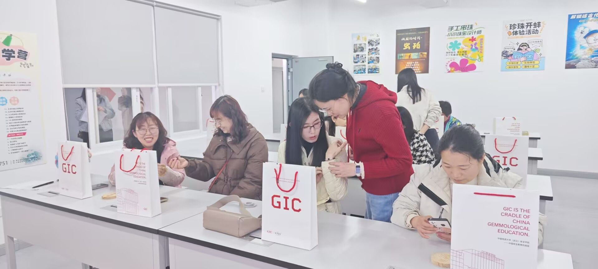 3月10日下午,“遇见非遗”传统珠宝首饰手工制作活动在南望山校区珠宝楼6楼温馨展开。紫水晶的神秘典雅、虎眼石的绚烂多彩、黑曜石的深邃迷人……一颗颗天然宝石仿佛诉说着属于自己的故事,瞬间激发了大家的创作热情。老师们认真学习宝石辨识技巧,充分发挥想象力,或搭配同色系的典雅风格,或大胆尝试跳色创意,纷纷串制出属于自己的精美饰品。现场欢声笑语,老师们交流搭配心得,不时展示成果,气氛温馨热烈。活动不仅让大家掌握了手工技艺,更增进了教师之间的情谊。