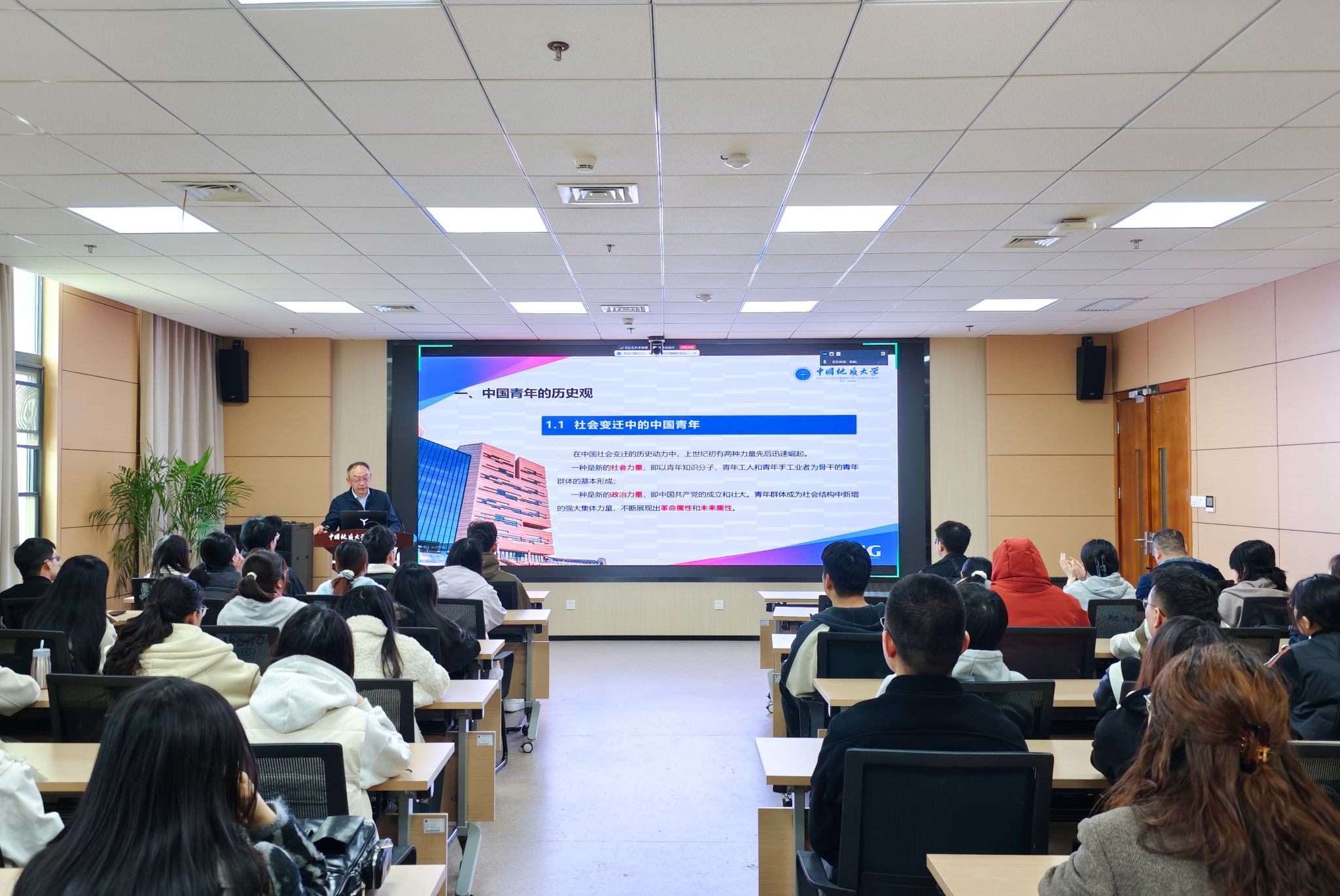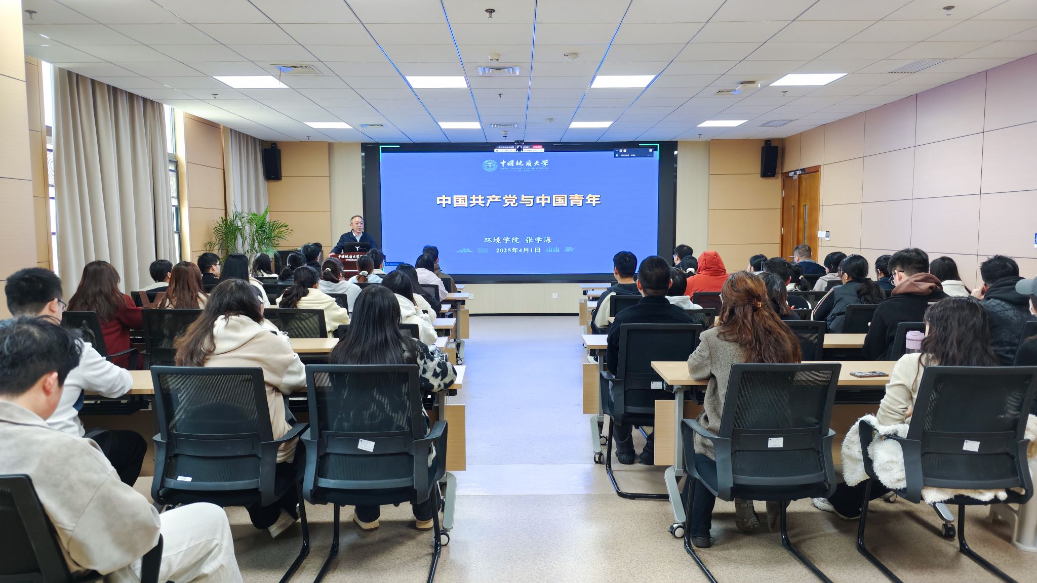 张学海以我们身边先进典型人物讲述了地大青年的时代担当,勉励大家要用建校70多年来成功经验、累累硕果教育和激励自己,把青春理想融入“中国梦”的伟大实践、融入“地大梦”“环境梦”的具体行动,在全面建设社会主义现代化国家的火热实践中,立大志、入主流,上大舞台、成大事业。在以中国式现代化全面推进中华民族伟大复兴的实践中,做执行者、行动派、实干家,立志做有理想、敢担当、能吃苦、肯奋斗的新时代好青年,让党信得过、靠得住、能放心。