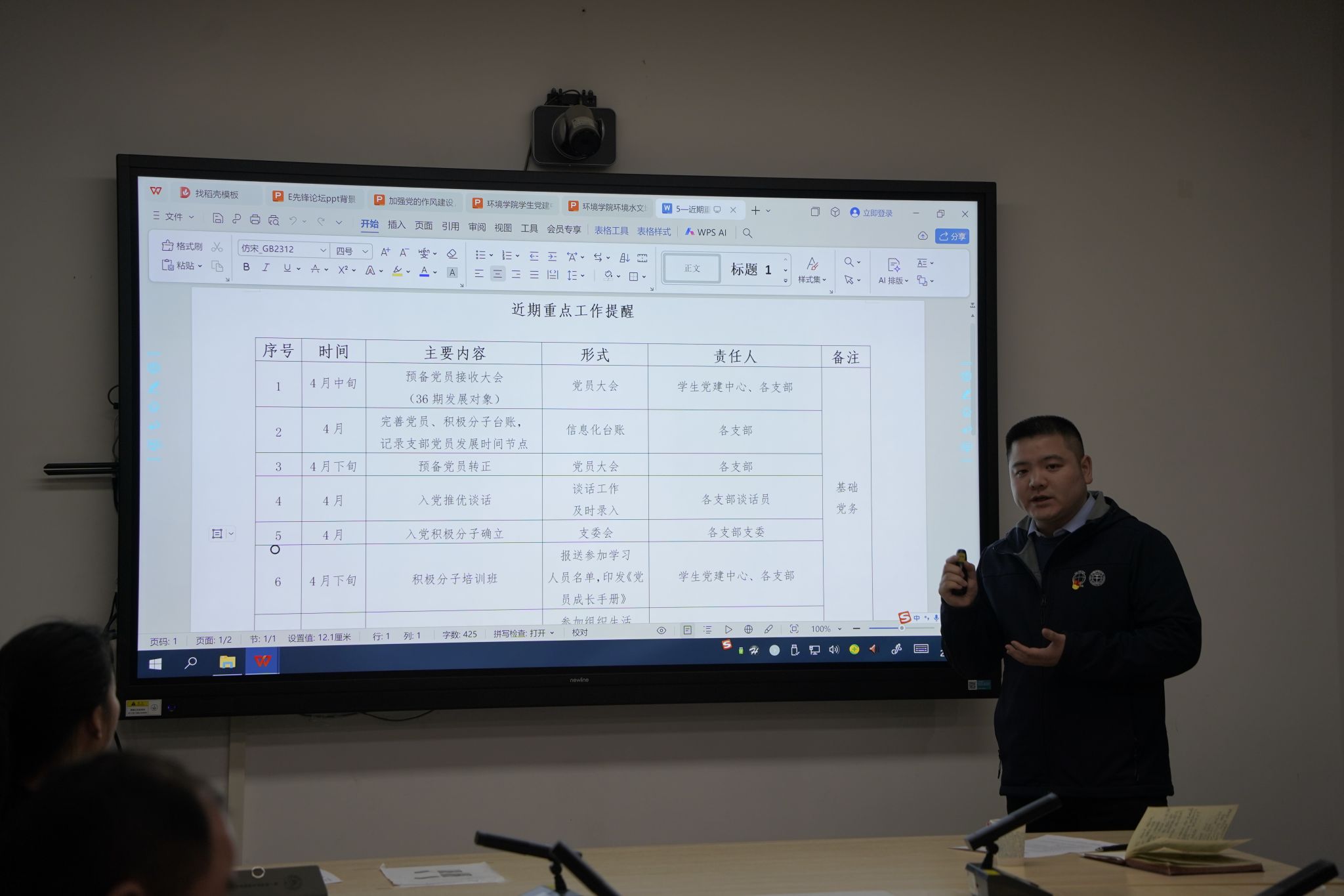 环境水文地质研究生第一党支部范瑞宇从支部概况、建设举措以及未来工作计划等方面介绍支部建设举措和成效。