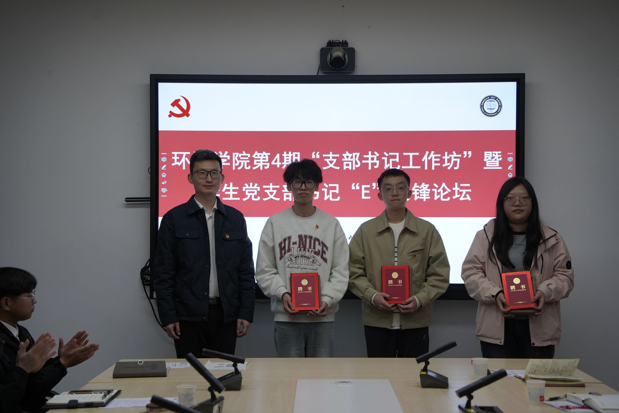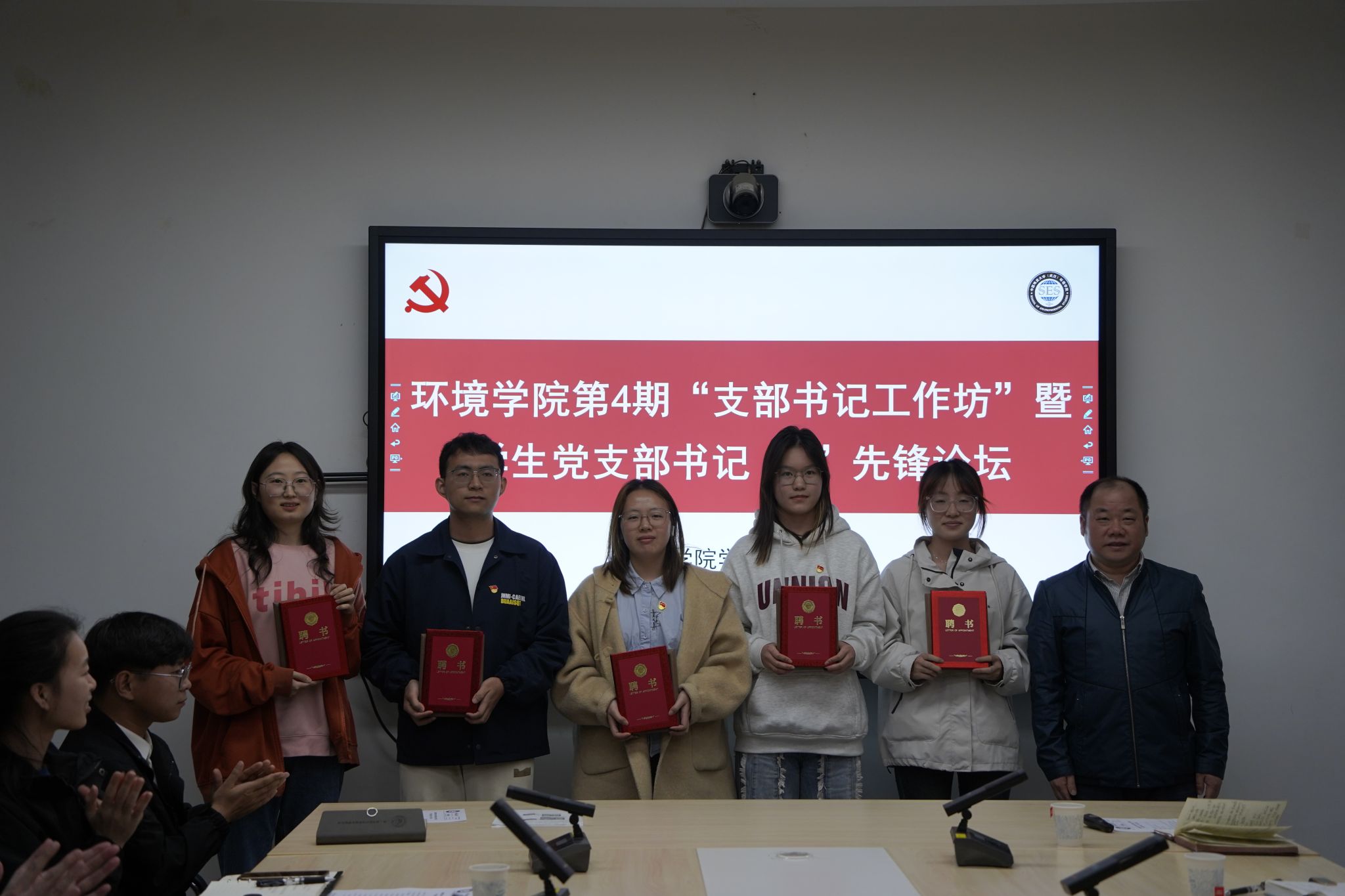 王海锋为毕业年级员工党建中心成员颁发聘书。