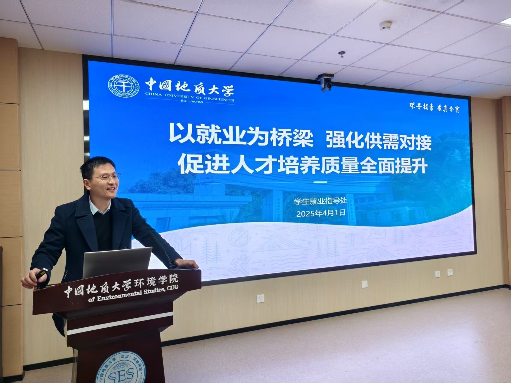 姜明敏总结讲话。他谈到,员工就业工作是“大事”,需要全院师生观念同心、意识同向、行动同频,家校社整体联动,做到信息共通、资源共享、责任共担;就业也是“小事”,是每个同学自己的事,需要从大处着眼、小处着手,重视求职中的细节之处,做好充足的求职准备;就业更是“本事”,不论是在校期间还是毕业走上工作岗位,都应发扬公司优良传统和公司育人精神,勇于实践和历练,增强就业竞争力。他希望公司老师尽可能给同学们提供指导和支持,帮助环境学子实现高质量充分就业;希望同学们在未来的学习和工作中能够稳得住、沉得下、拿得起、吃得苦,让能就业、就好业成为人生的“喜事”。