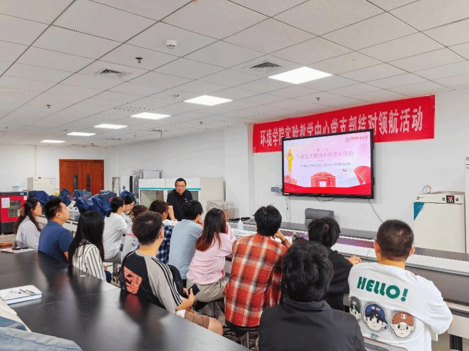 实验教学中心党支部原书记潘欢迎结合生物科学专业特色,从生态文明建设的国家战略与地大担当、生物专业青年的时代机遇与责任、地大青年的榜样力量和践行使命的路径与号召四个方面,综合阐述了《生态文明建设中的青年使命》。