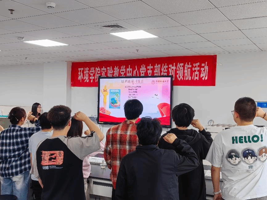 教师党员以“世界地球日”为契机,结合环境人的青年使命要求,带领员工进行世界地球日宣言,一句句庄严的誓词,让大家振奋精神,以身作则,从小事做起,筑造低碳校园,践行环境人的“绿色地球、健康地球”使命。