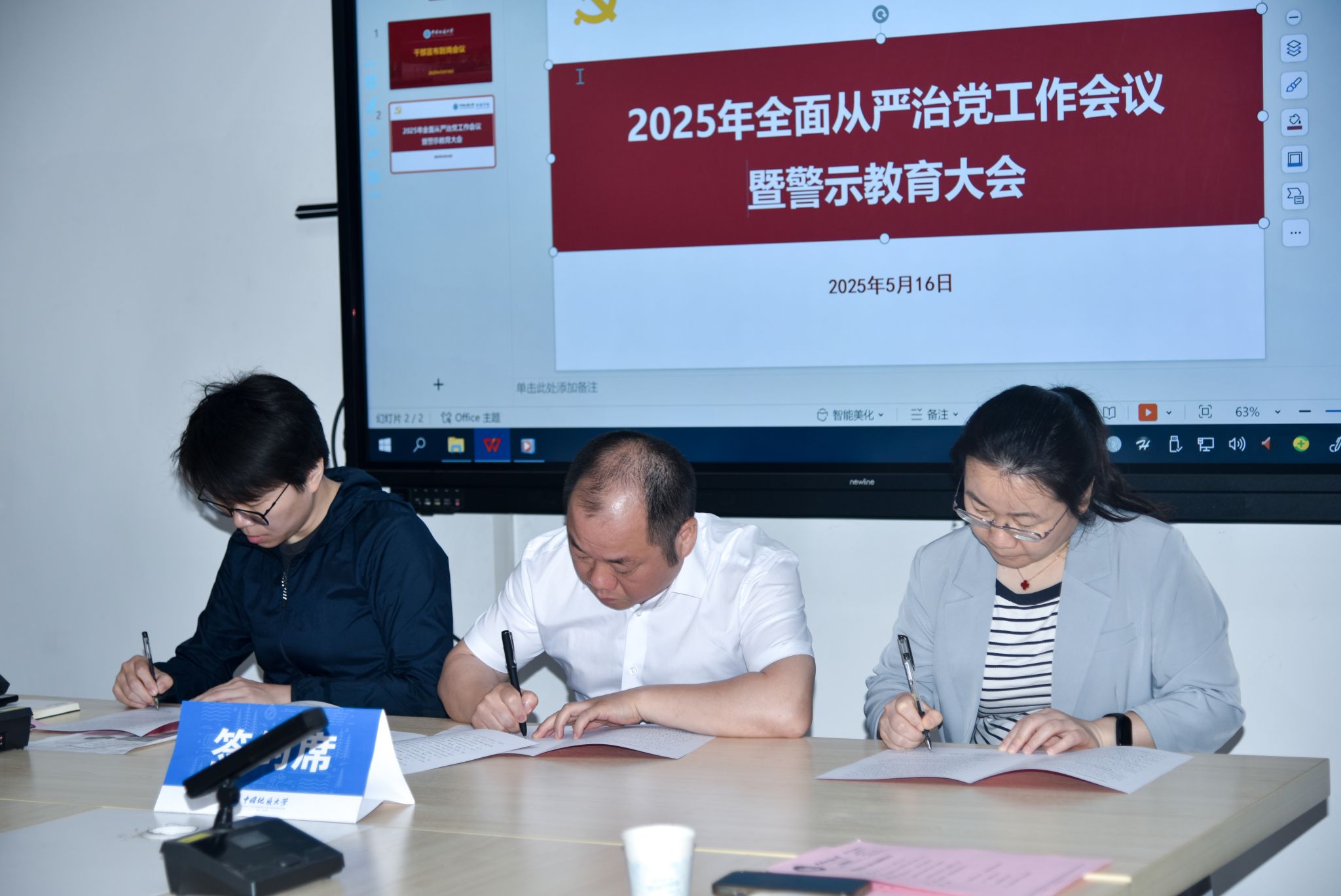 (摄影张学海 通讯员/编辑王孟雪)2025年5月16日,2025年全面从严治党工作会议暨警示教育大会在未来城校区科教楼四308会议室召开。公司党委副书记、纪委书记唐忠阳应邀出席,公司领导班子成员,党委委员、纪委委员,三级单位党支部书记、主任,群团组织代表参加会议。公司党委副书记王海锋主持会议。