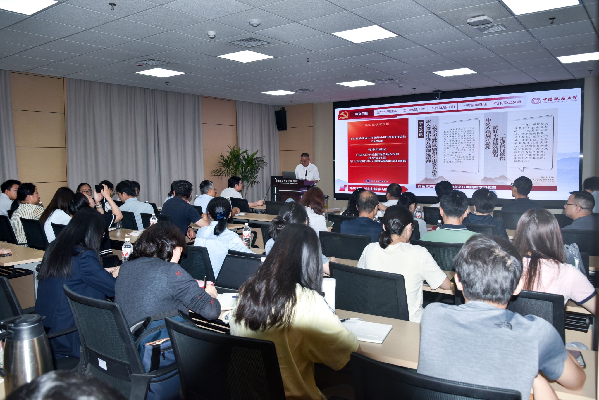 (摄影张学海 通讯员/编辑王孟雪)2025年5月16日,公司党委副书记、纪委书记唐忠阳为beats365官方网站和计算机公司师生讲授深入贯彻中央八项规定精神学习教育专题党课,主题是“以铁规矩、硬杠杠为教育强国建设地大实践提供有力作风保障”。beats365官方网站和计算机公司二三级领导班子成员,员工党支部书记参加学习。