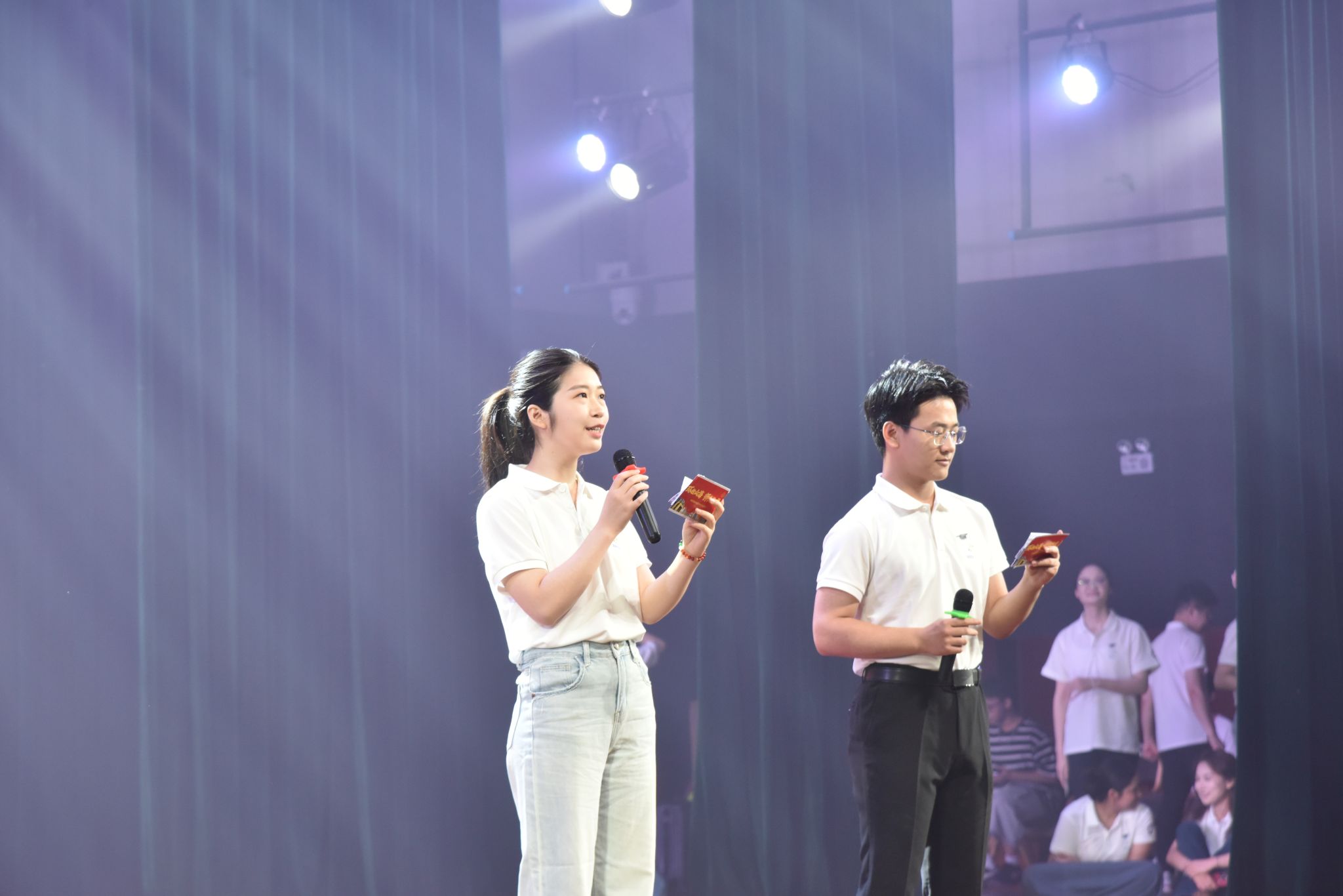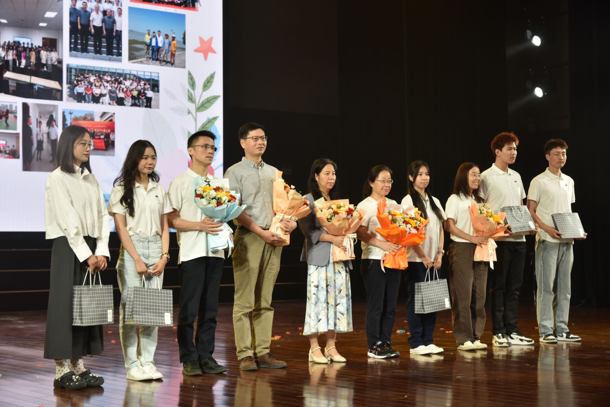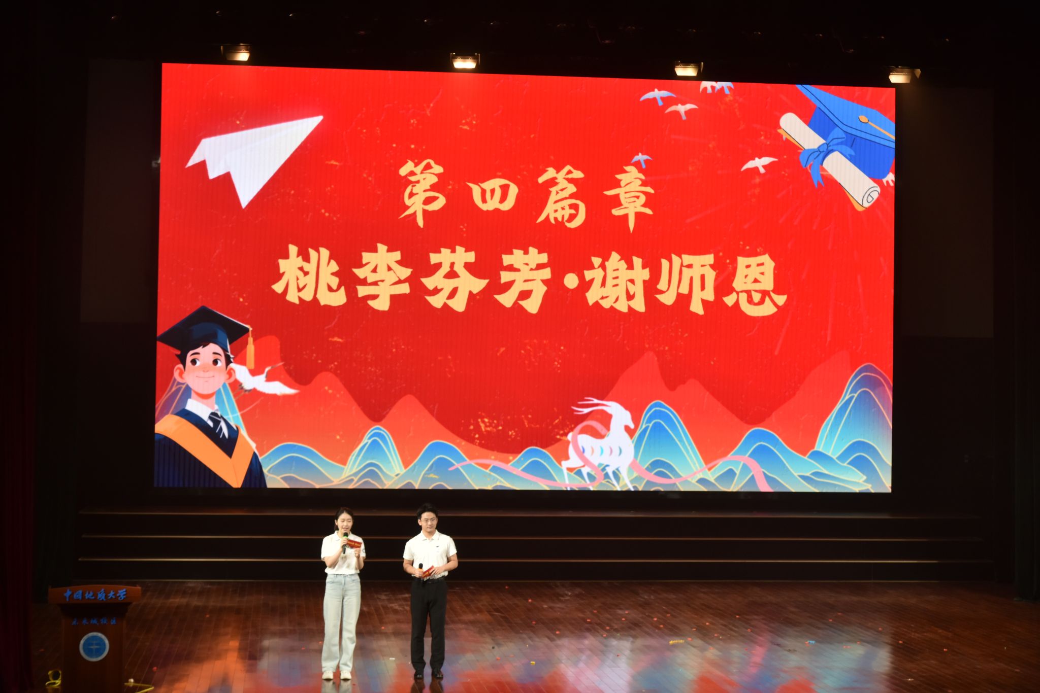 第四篇章“桃李芬芳·谢师恩”。活动现场播放了由毕业生精心制作的感言视频,同学们以真挚的语言回顾求学时光,向母校和师长表达深切感恩之情。随后,举行毕业纪念品互赠环节,教师代表向毕业生赠送公司文创纪念品,员工代表向教师代表献上感恩之花。