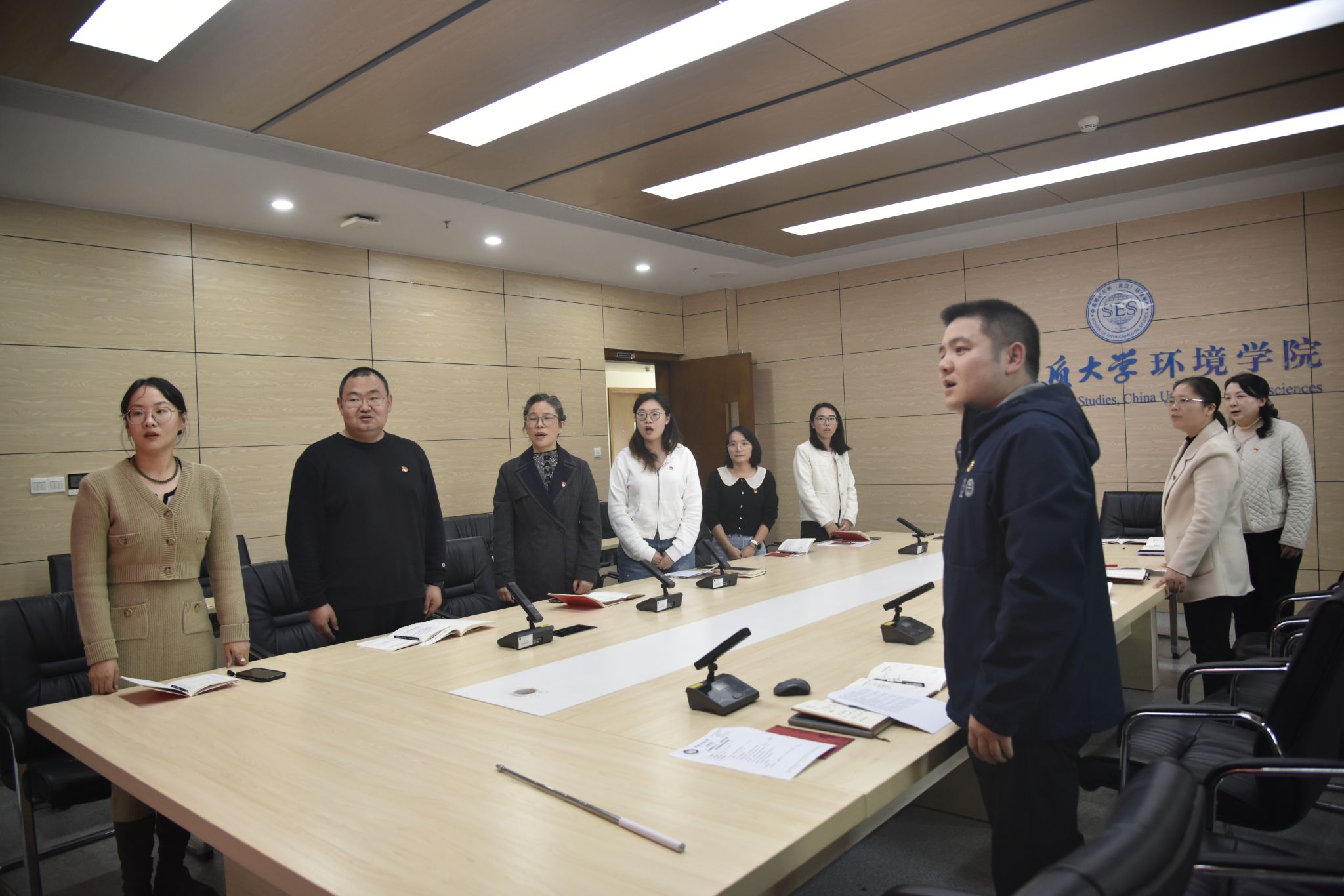 支部党员唱国歌、温誓词。