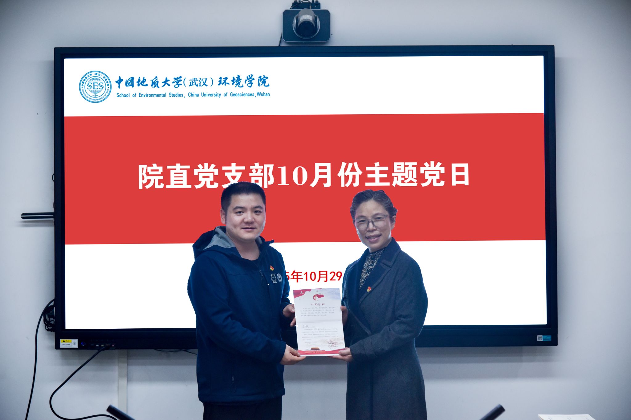 主题党日上,支部成员按时、持证、足额交纳了10月份党费。