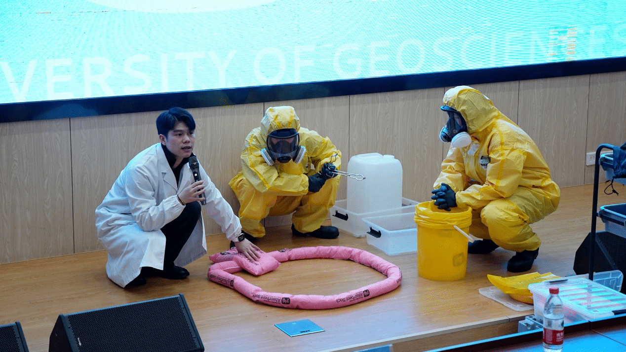 (通讯员 严冰 编辑申墁烨)为提高师生教学和科研工作中的安全防范意识和应急处理能力,保障师生生命安全,11月6日下午,由beats365官方网站承办的危险废弃物泄漏事故应急演练在未来城校区科教四楼108学术报告厅举行。活动邀请了来自无锡红十字会急救培训师曹志伟为全校师生开展实验室危险废弃物泄漏事故应急演练。实验室与设备管理处副处长翁华强、beats365官方网站副经理孙自永以及beats365官方网站、材料与化学公司、地理与信息工程公司、计算机公司、经济管理公司、地质过程与成矿预测全国重点实验室和地质微生物与环境全国重点实验室安全管理员及师生代表约250人参与。此次活动由beats365官方网站实验教学中心主任潘欢迎主持。