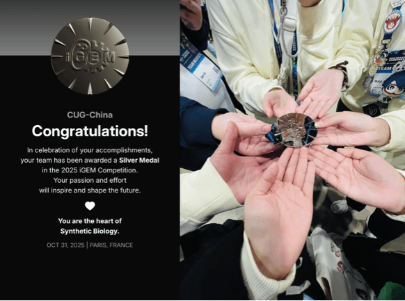 (通讯员/摄影CUG-China团队 编辑申墁烨)近日,2025年国际基因工程机器大赛(iGEM 2025)在法国巴黎落下帷幕,公司“CUG-China”团队再次荣获国际银奖,为公司在合成生物学国际舞台上再添新彩。