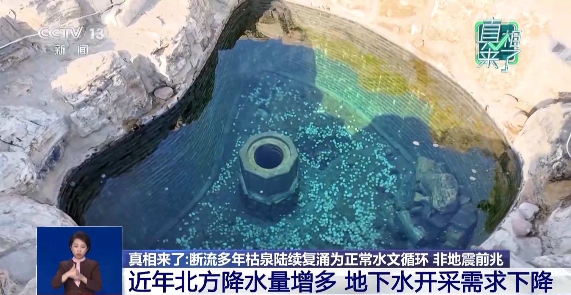 专家介绍,近年来,我国北方地区降水量增多,再加上大型水利工程的通水使用,使得地下水开采需求下降,地下水的水位持续回升,也让多地断流数十年的泉水陆续复涌。专家表示,经多地监测验证,2025年较2020年,华北地区浅层地下水位回升3.65米,深层地下水位回升更是达到7.65米。
