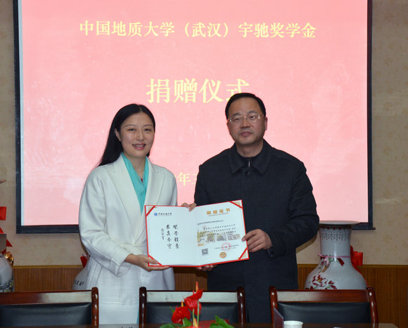 (通讯员王碧 摄影 编辑张学海)3月24日下午,宇驰奖学金捐赠仪式在文华楼公司党员活动室举行。公司党委书记何光彩,环境工程专业98级员工、深圳市宇驰检测技术股份有限公司董事长何姝,副总经理肖玲君,武汉分公司总经理赵劲,员工与社会合作处长、校基金会秘书长徐岩,副处长、副秘书长李门楼,公司党委书记李素矿、经理马腾、党委副书记朱继,公司师生代表参加捐赠仪式。