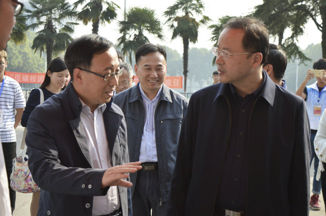 经理马腾向公司党委书记何光彩汇报环境文化科技节