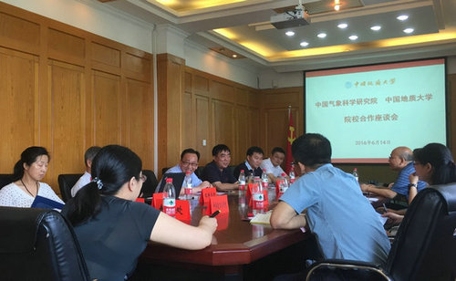 马腾经理主持座谈会。赖旭龙副董事长对赵平副经理一行的来访致欢迎辞。刘东杰副主任介绍了公司的历史和取得的相关成就。气科院研究生部王欣主任介绍了中国气象科学研究院的相关情况。李双林教授介绍了公司与中国气象局的合作进展以及大气学科专业的建设情况。