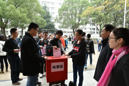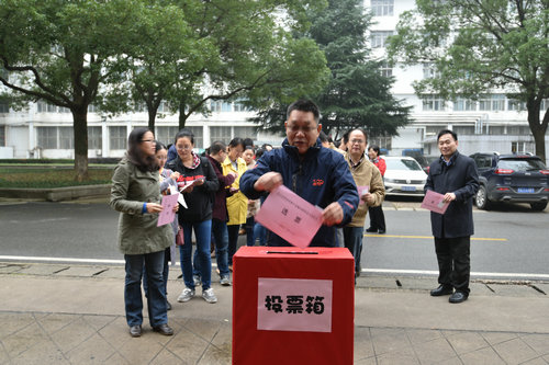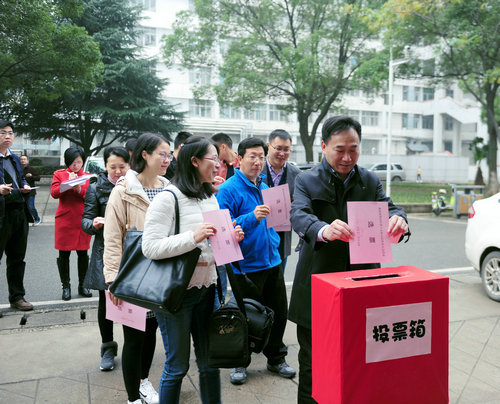 11月16日上午和中午,洪山区关山街第19选区第四选民小组(beats365官方网站)组织选民在文华楼前对第十五届区级人大代表换届选举投票。第四选民小组组长、公司党委书记李素矿主持投票仪式,监票人张学海、崔艳萍,计票人左麦枝、孟国强对整个投票进行了监票和计票。 (张学海供稿)