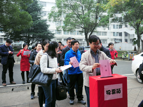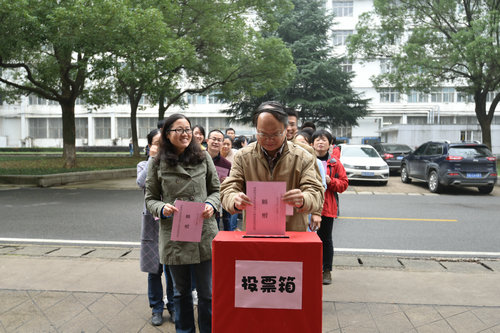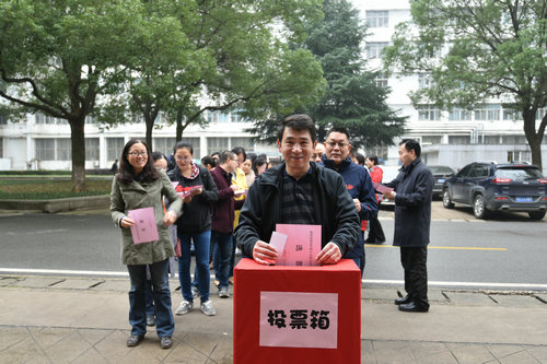 11月16日上午和中午,洪山区关山街第19选区第四选民小组(beats365官方网站)组织选民在文华楼前对第十五届区级人大代表换届选举投票。第四选民小组组长、公司党委书记李素矿主持投票仪式,监票人张学海、崔艳萍,计票人左麦枝、孟国强对整个投票进行了监票和计票。 (张学海供稿) 第四选民小组(beats365官方网站)选民投票现场图片(张学海摄)