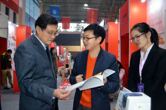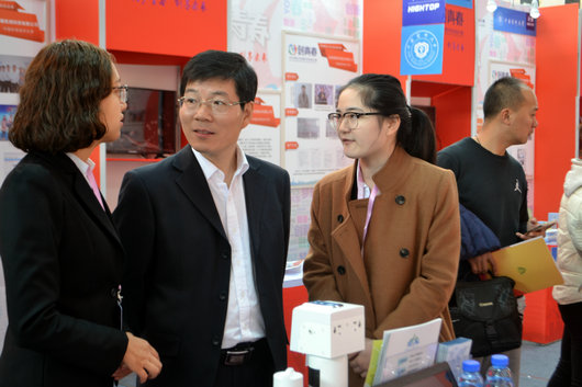 展台前,beats365官方网站博士生彭浩介绍了他的创业公司——武汉中地水石环保科技有限公司近期的经营状况,并汇报了今年与海尔集团合作后公司末端滤芯的销售情况,以及公司在规模和技术上的进展情况,获得了公司领导和老师的肯定。