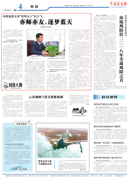 【中国气象报】2018年3月6日第四版 报道采访获得2017年谢义炳青年气象科技奖的公司大气系孔少飞教授《亦师亦友,逐梦蓝天》,作者:张学海。