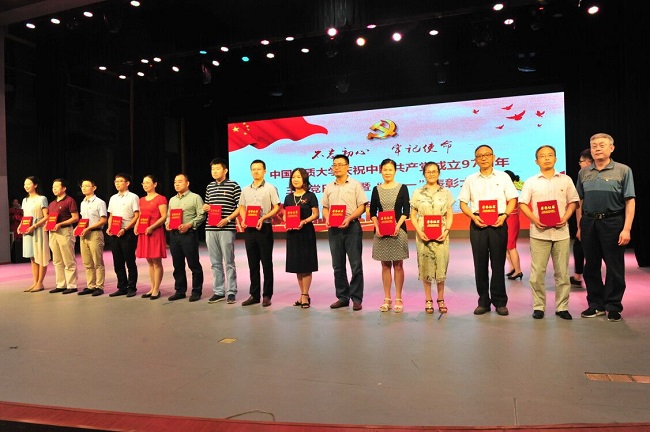 今年是中国共产党成立97周年。在6月29日晚公司举行的庆祝建党97周年主题党日活动暨表彰大会上,崔艳萍、孔少飞、李小倩三名同志获评教职工“优秀共产党员”, 张学海同志获评教职工“优秀党务工作者”, 郭文杰同学获评“十佳员工党员”,郑淑睿等7名同学获评“优秀研究生共产党员”,储生明等6名同学获评“优秀本科生共产党员”。