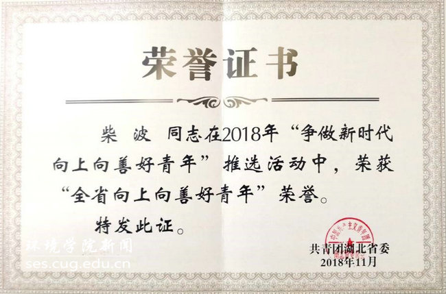 (通讯员:王碧 编辑:张学海)近日,在团省委举办的2018年“争做新时代向上向善好青年”推选活动中,公司柴波教授荣获“全省向上向善好青年”荣誉称号。