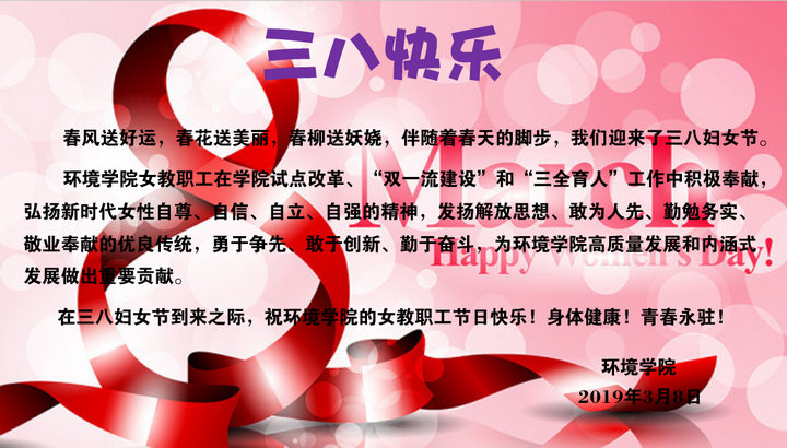 祝全体女教职工三八节快乐!