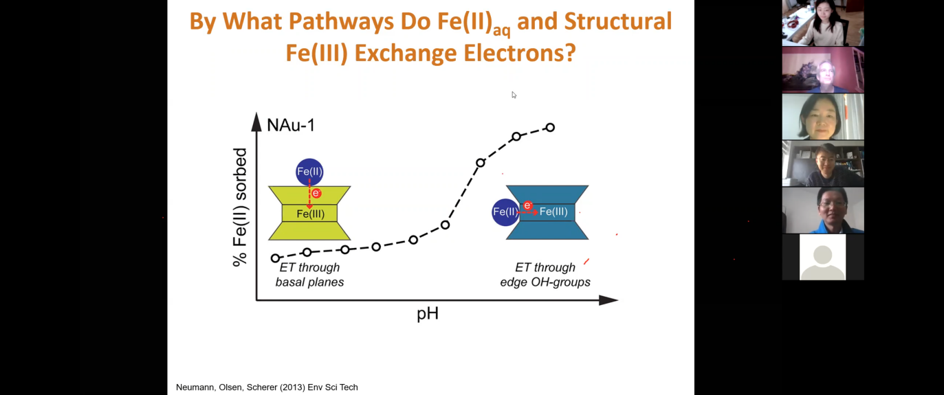 Kevin Rosso教授以《Unraveling Mechanisms of Redox Reactions Facilitated by Iron-Bearing Clay Minerals》为题做讲座后与同行交流讨论