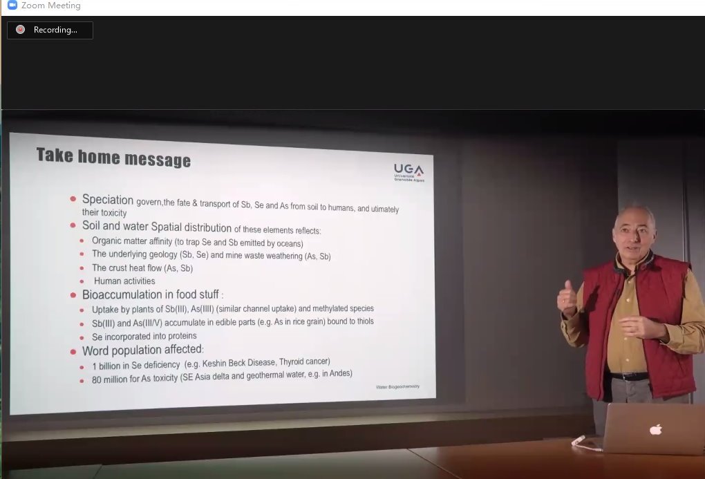 Laurent Charlet教授以《Geochemistry and Spectroscopy of Se, Sb &As - The Key Role of Speciation in their Environmental mobility and Public Health Impact》为题做讲座