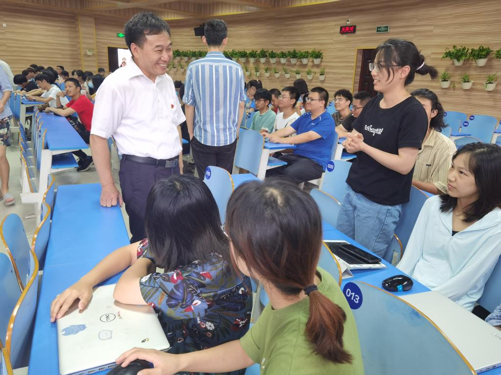 李素矿一行与同学们亲切交谈,详细询问同学们的学习和生活情况,鼓励大家认真学习,夯实基础,练就过硬的专业本领和扎实的思想作风。