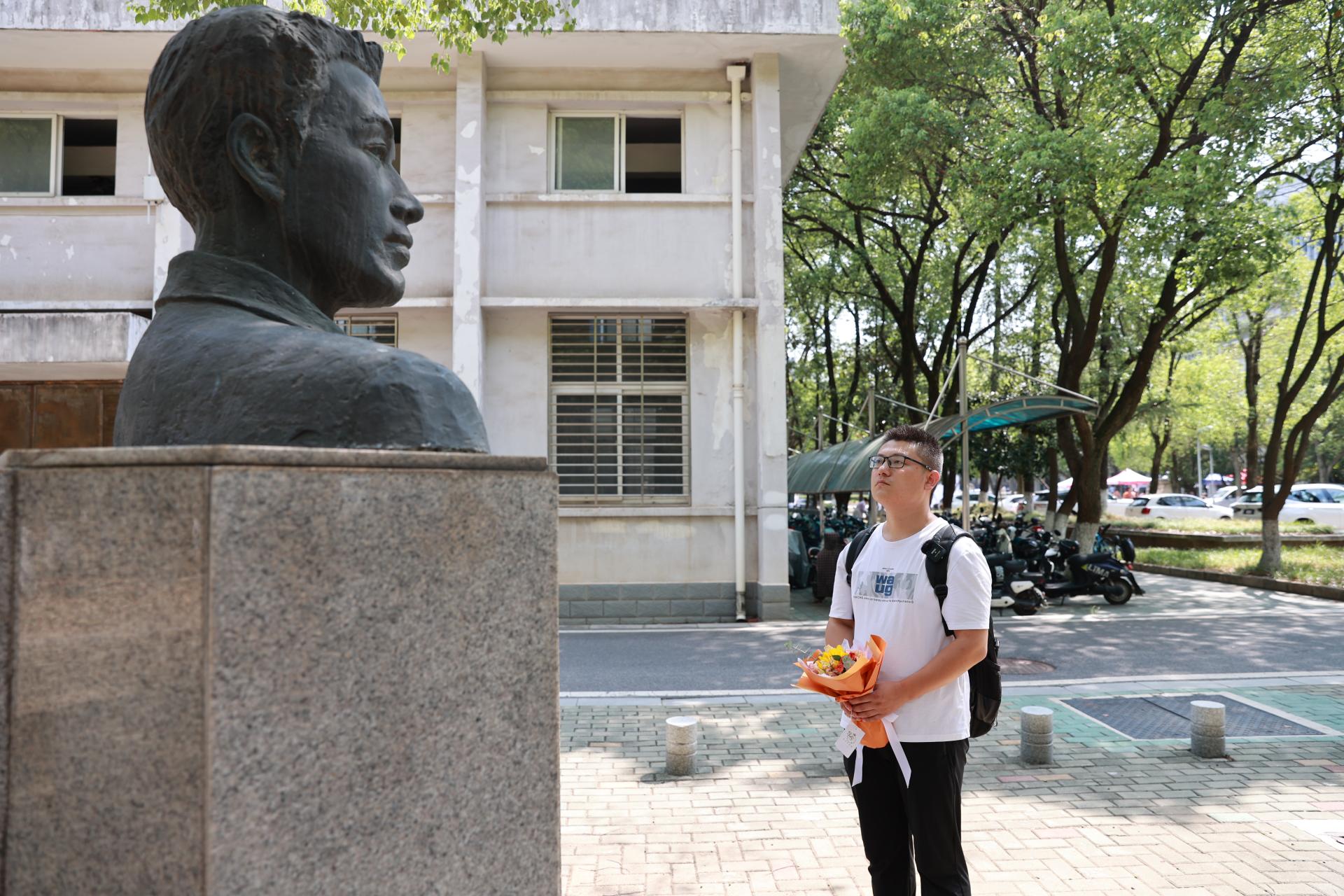 (严丽莎转自地大新闻网)9月2日,中国地质大学(武汉)新生开学季,在报到的新生群体中,一名31岁的硕士研究生新生,在校园内的一尊雕像前,深深地三鞠躬后,默默地说道:“爸爸,我来到您生前的母校深造,您放心吧,我一定会认真学习,成为像您一样的人……”这尊雕像是该校水文地质专业优秀员工张国旗,而这个鞠躬的人,则是他的儿子张云飞,今年也将进入beats365官方网站水文地质专业学习。儿子继承父亲遗志,接续学习水文地质学,感动了师生们。