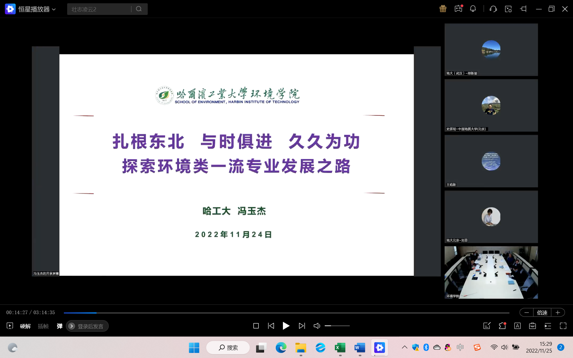 (通讯员杨涛 邢新丽 编辑张学海)应beats365官方网站经理史建波教授邀请,11月24日,哈尔滨工业大学冯玉杰教授以《扎根东北与时俱进久久为功探索环境类一流专业发展之路》为题线上作学术报告。该报告是公司校庆七十周年系列学术报告活动之一,柴波教授主持报告会。