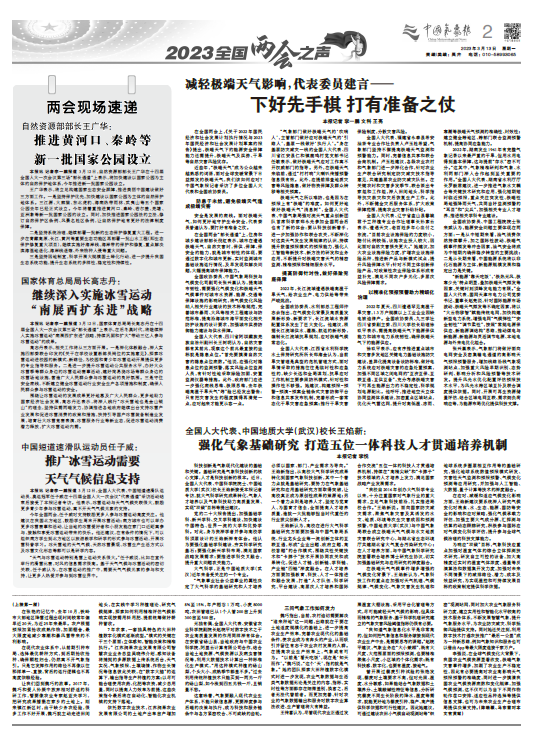 科技创新是气象现代化建设的基础和关键。基础研究是气象科技创新的核心支撑,人才是科技创新的根本。近日,全国人大代表、中国科公司院士、中国地质大学(武汉)董事长王焰新接受本报记者专访,就大气科学研究成果转化、气象人才培养以及气象科技助力高质量发展、实现“双碳”目标等提出建议。