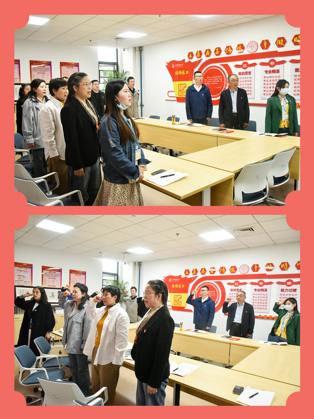 支部党员唱国歌、温誓词。