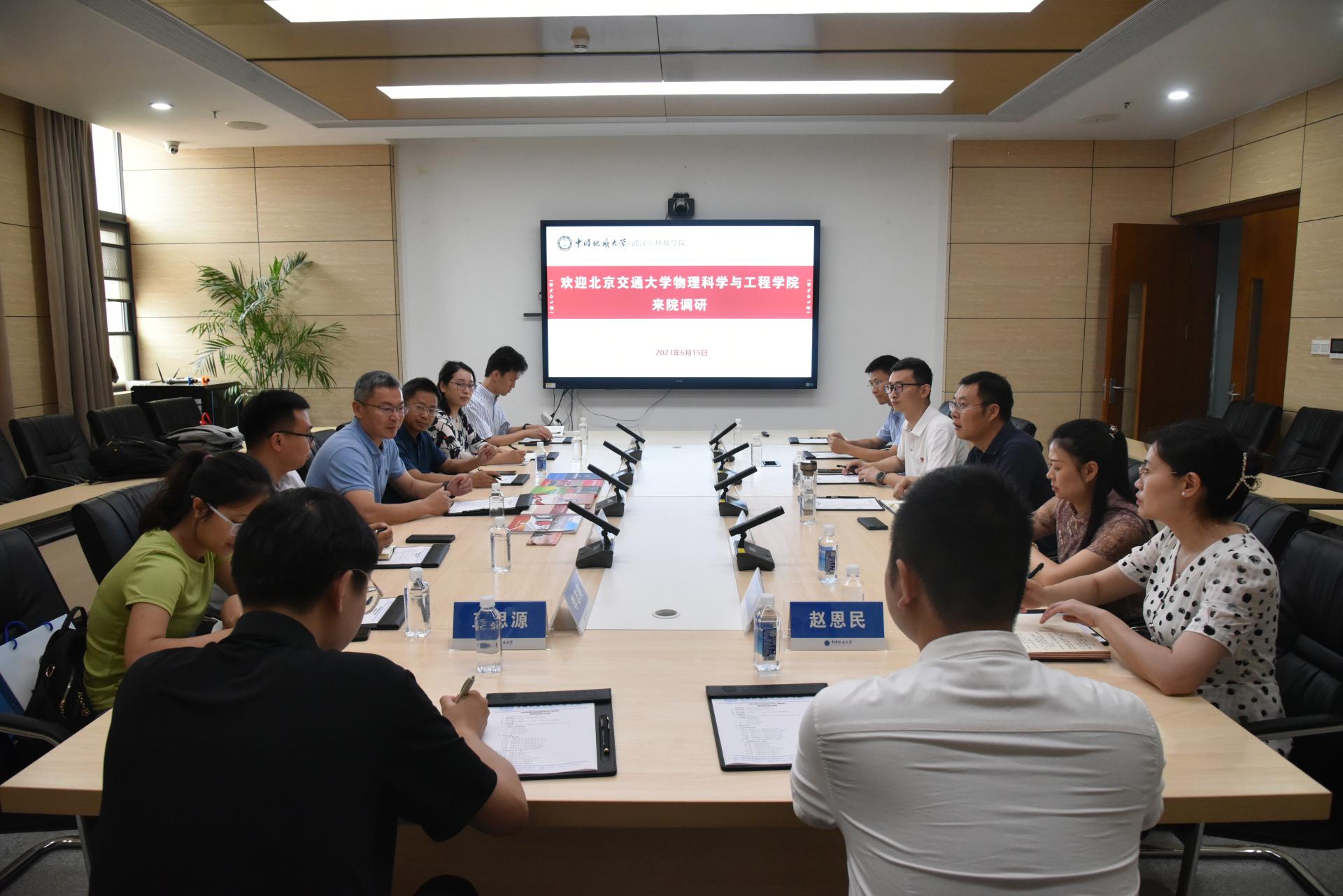 (通讯员付苑婷 摄影耿婧 编辑严丽莎)2023年6月15日上午,在未来城校区科教楼四308会议室,北京交通大学物理科学与工程公司党委书记丁鹏玉,副书记、副经理丁克俭等一行来公司进行调研座谈。公司党委副书记王海锋、副经理柴波等参加座谈会。王海锋主持会议。