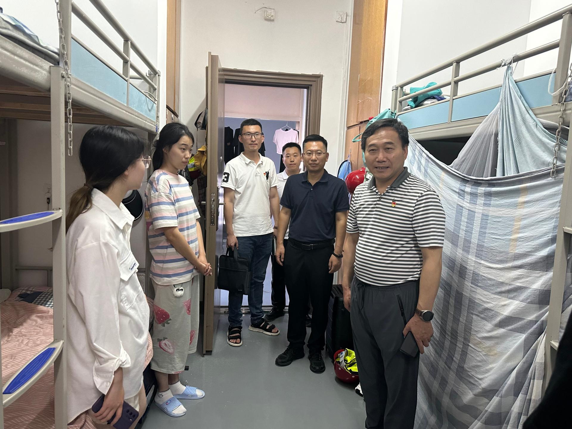 座谈会后,李素矿、史建波一行走进实验室和员工宿舍看望实习员工,与员工亲切交谈,问询员工野外实习期间的学习生活收获。他们叮嘱同学们要珍惜野外实习机会,在野外实习实践中提升理论认知水平、专业操作技能,做好防暑降温和安全防护。