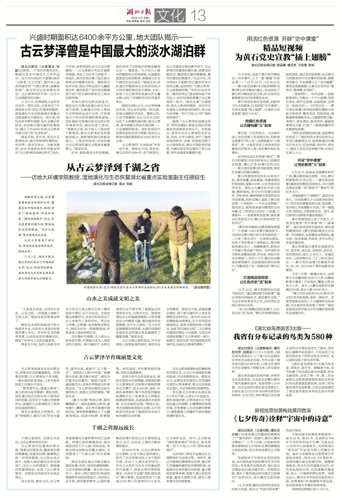 2023年11月6日,《湖北日报》文化版刊发了公司生物系顾延生教授团队有关江汉湖群演化与保护的研究成果,报道从“山水之美成就文明之美、古云梦泽孕育瑰丽楚文化、千湖之省源远流长”等三个方面详细介绍了古云梦泽的兴盛与演化历史,从古云梦泽到千湖之省的心路历程,反映了由自然驱动向人为干预的历程,见证了人湖关系的变化。近代以来江汉湖群的快速演化与退化趋势值得警惕,呼吁加强江汉湖群保护与治理,谱写人湖和谐共生的新篇章。