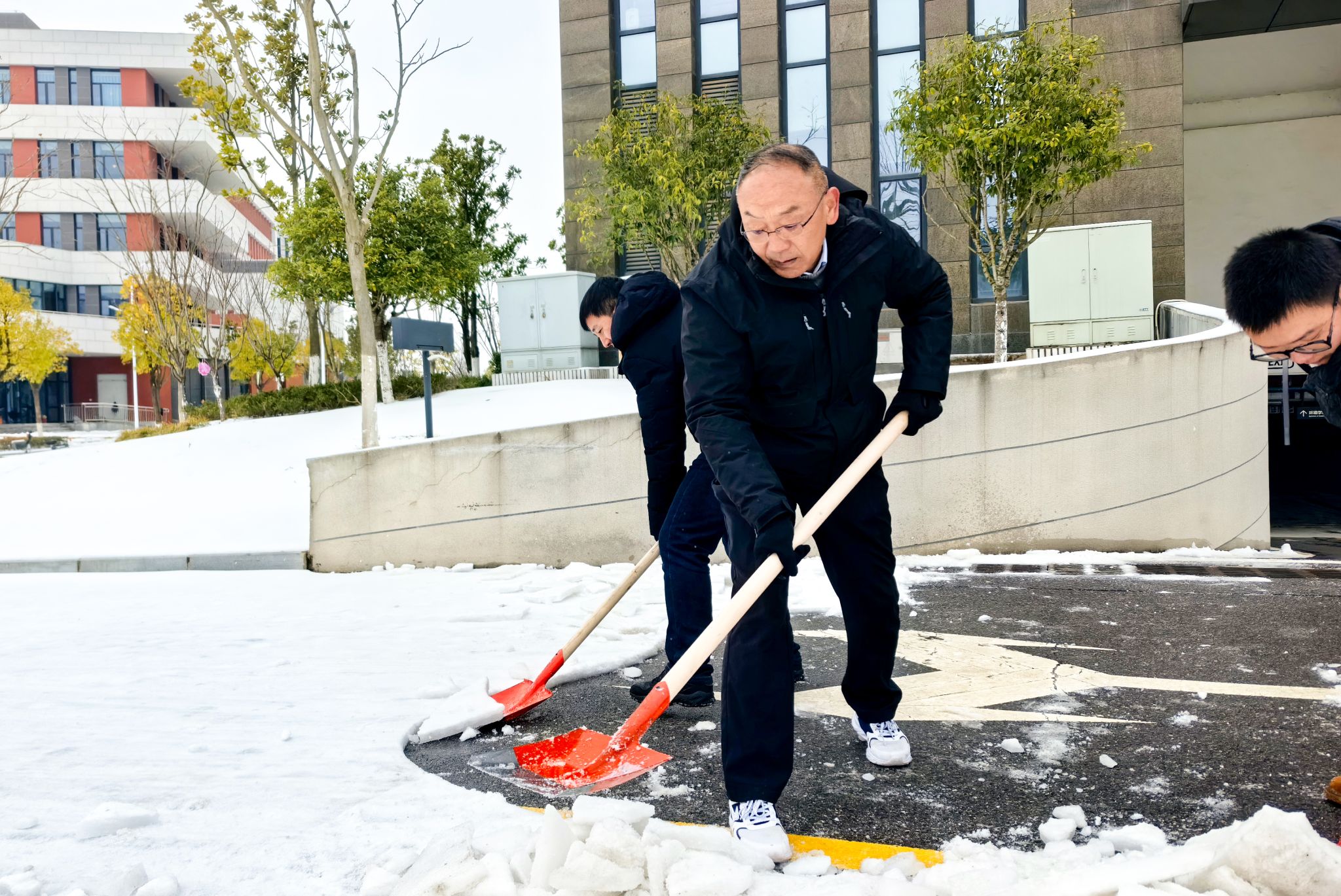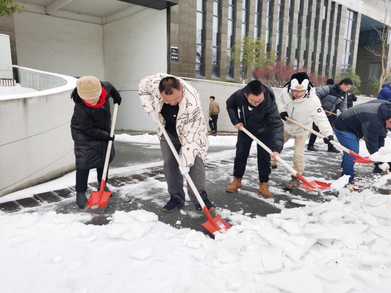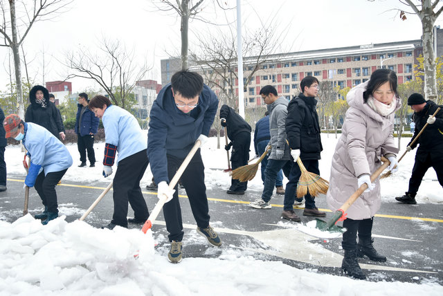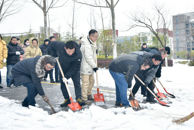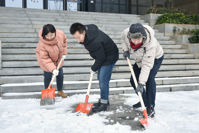 (通讯员刘凤莲 摄影张学海 编辑何娟)近日,武汉出现新一轮低温雨雪冰冻灾害天气,校园结冰路滑,存在许多安全隐患。为保障校园出行安全、通畅,营造良好的校园环境,公司党委积极响应公司号召和部署要求,成立应对低温雨雪冰冻天气应急突击预备队,2024年2月23日上午,公司应急突击预备队和院师生开展铲冰除雪行动,清除科教楼四周边道路冰雪。