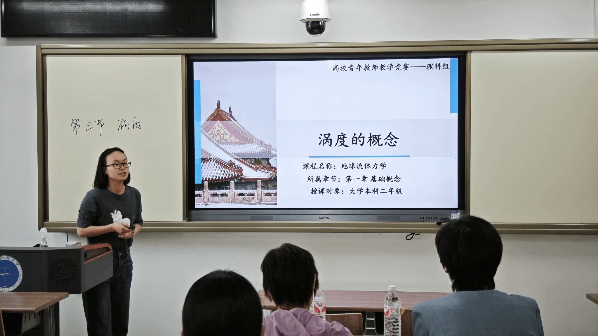朱棋、燕莹莹、陈柳竹三位青年教师依次以主讲课程进行教学展示,结合教学竞赛有关要求,展现了综合教学技能和课程思政设计。