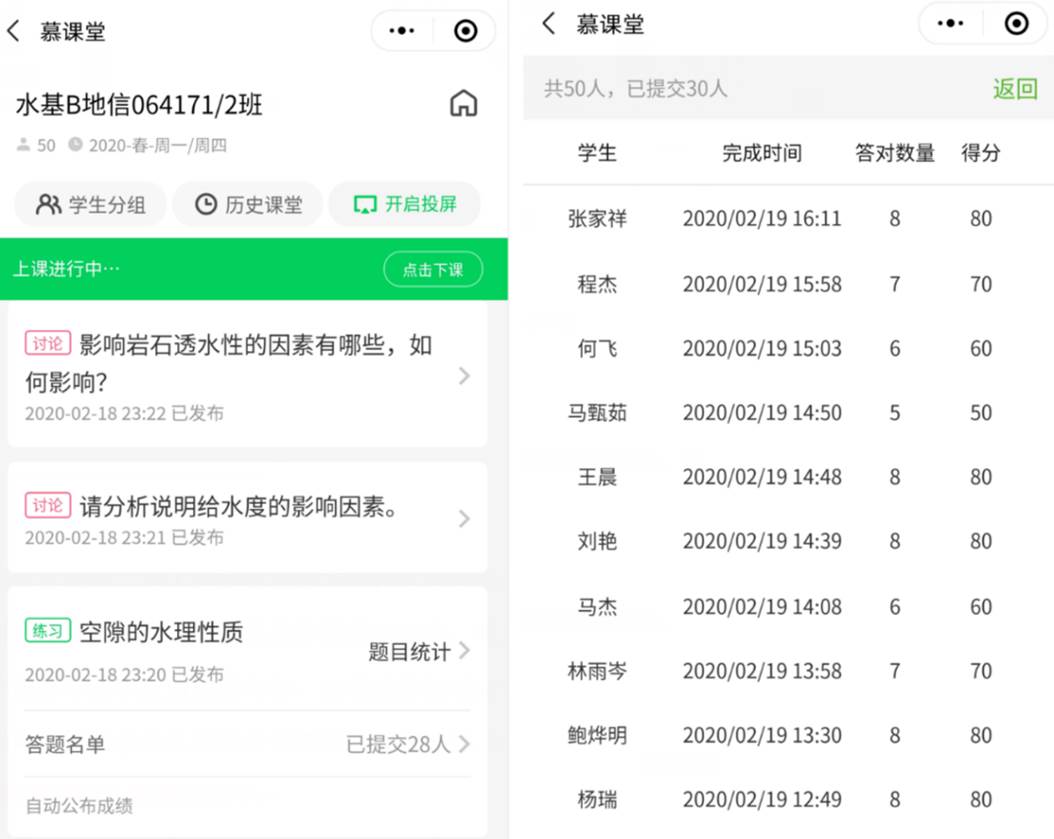 水文地质学基础课程组承担了2020年春地空公司、资源公司和地公司三个公司的授课任务,授课团队前期有《水文地质学基础》MOOC建设良好基础。面对疫情,课程组黄琨和陈文岭老师成为MOOC-直播混合教学模式的吃蟹人。经过前期精心准备,两个教学班(4个行政班)均已顺利开展了3次混合式教学。