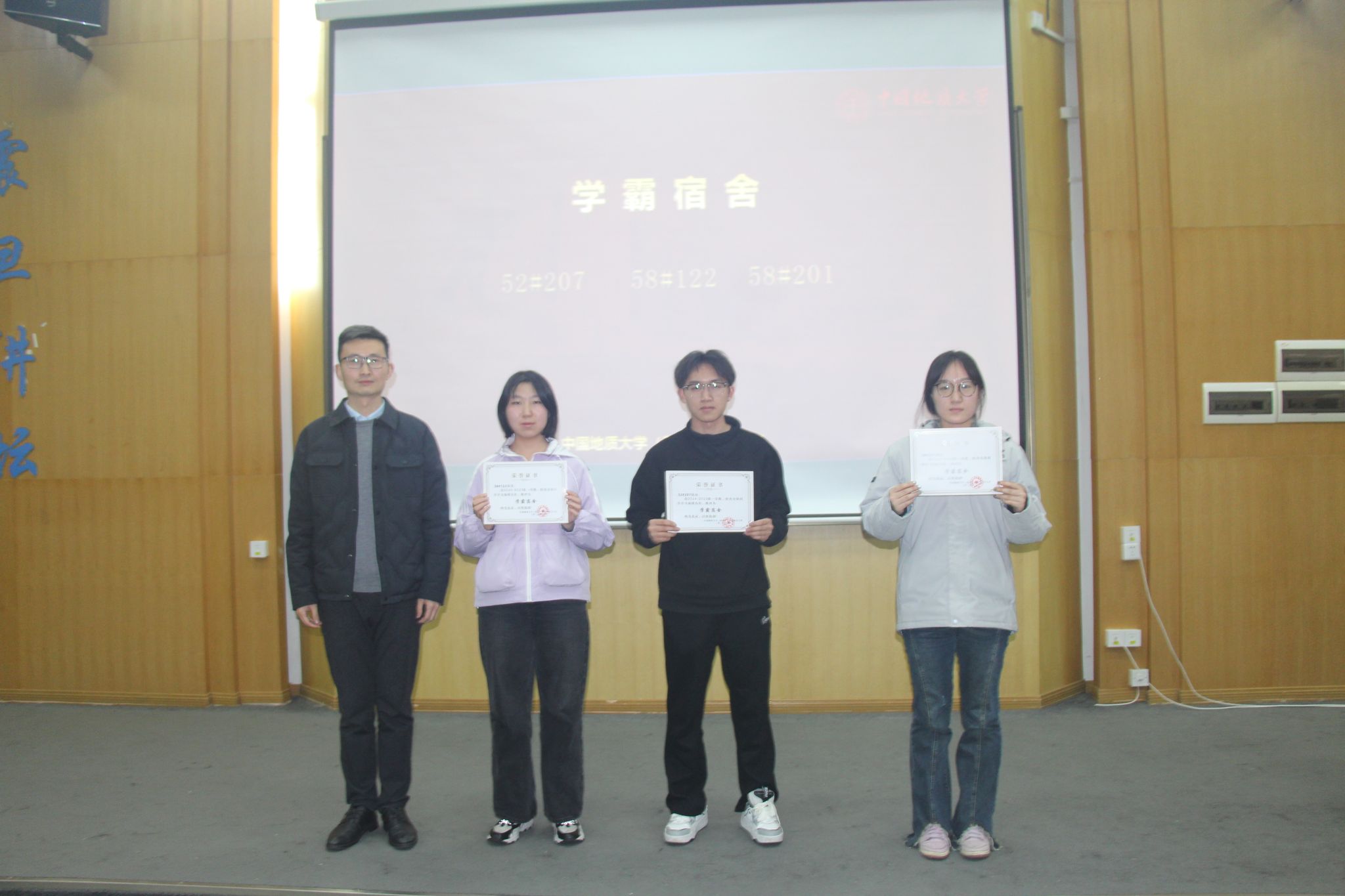 王海锋老师为学霸宿舍颁发荣誉证书