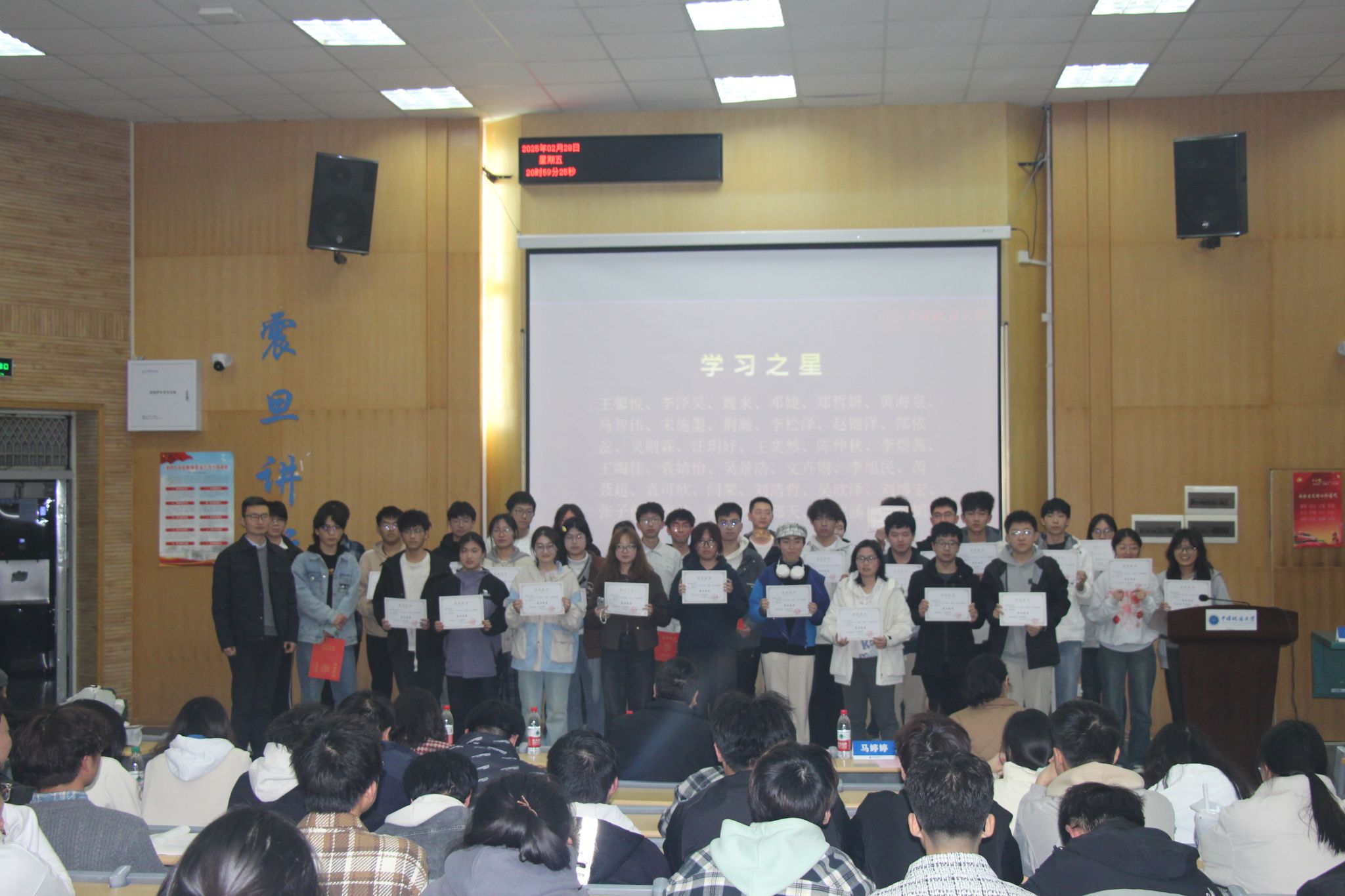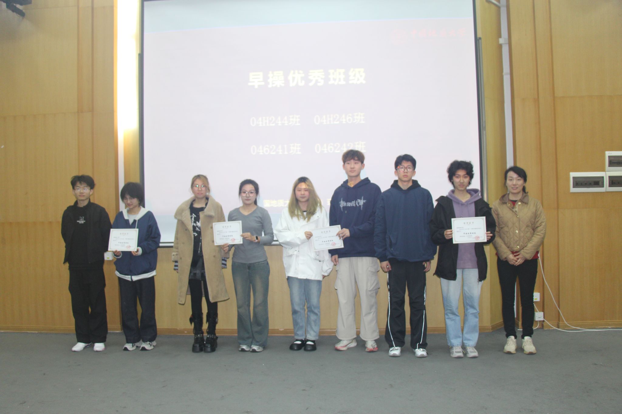 鲁小璐老师为学风建设优秀班级颁发荣誉证书