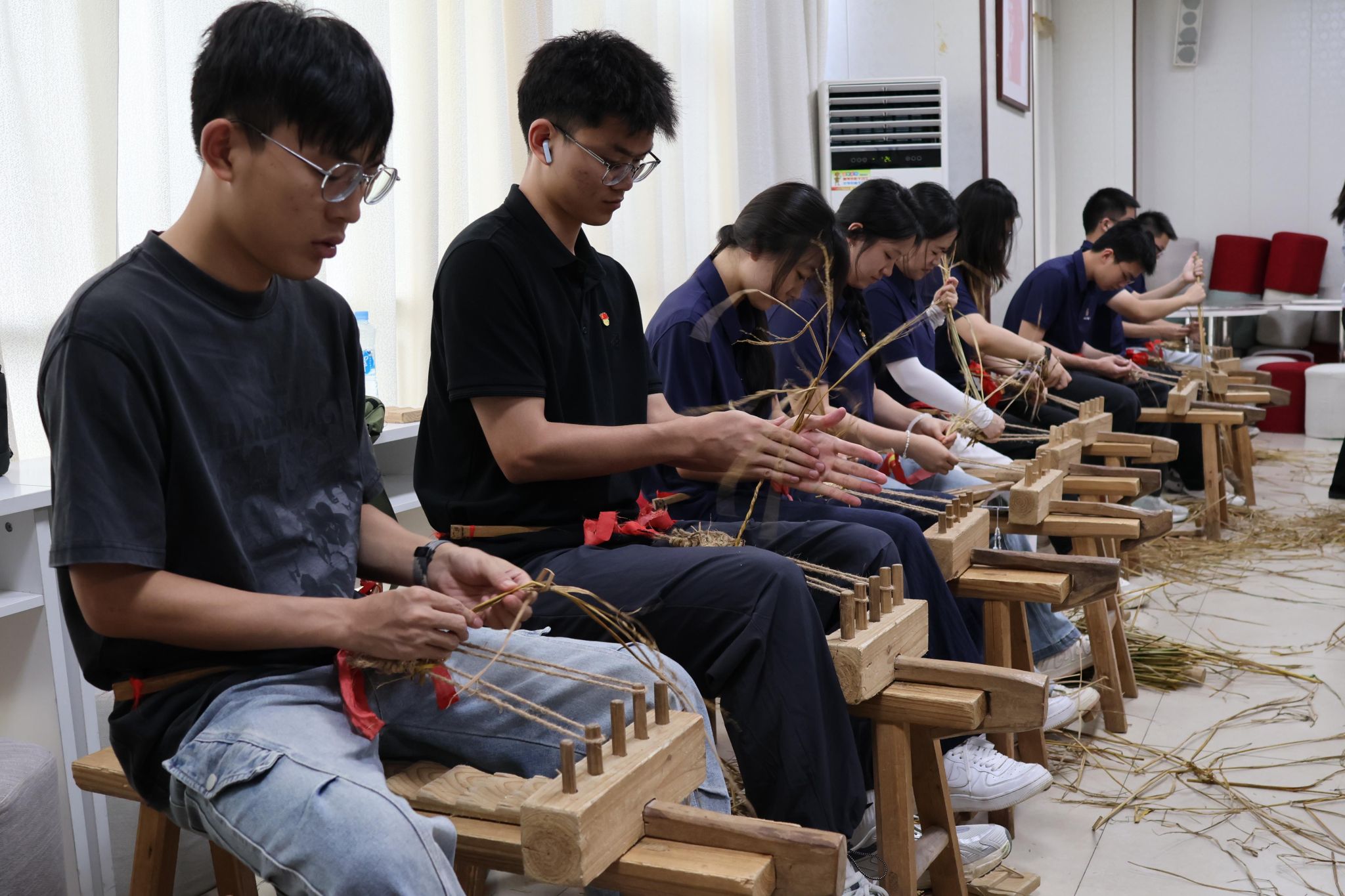 红色歌曲激昂澎湃,唤起坚定信仰;草鞋编织实践,重温革命初心。基地教师简玉群、刘小如带领全体学员,以红歌教学为载体,通过红色旋律唤起对革命岁月的追忆,激昂的歌声传递出对革命先辈的崇高敬意与传承信仰的坚定决心。在“学编红军草鞋”体验教学中,从搓绳到编织,团队成员在编织过程中深切体会革命年代的艰辛历程与先辈的智慧结晶,在实践中深化对红色精神的理解。