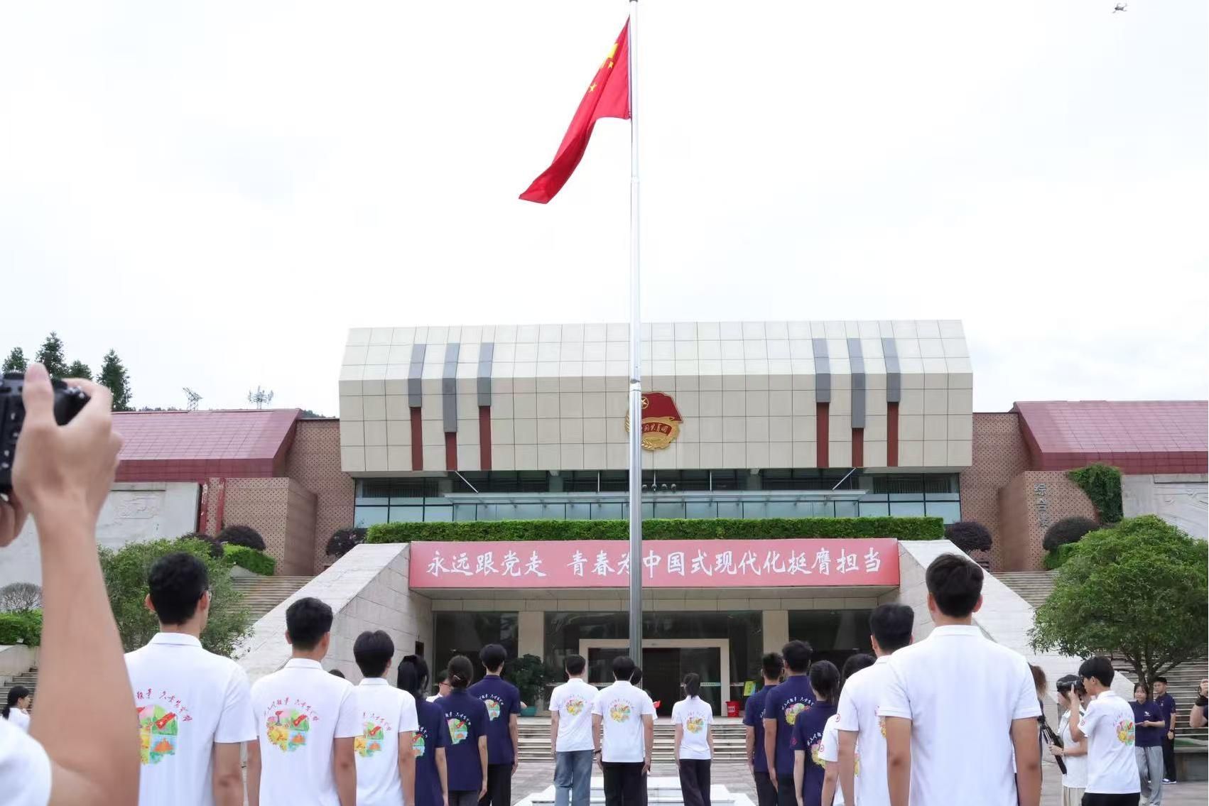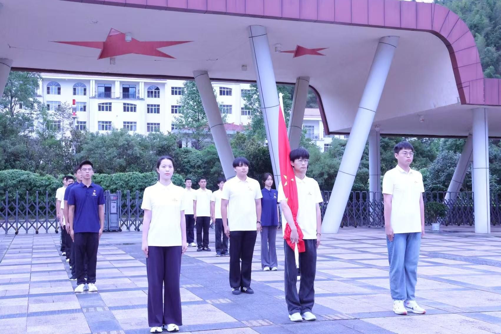 红旗招展,初心映照信仰之光。8月6日清晨,在基地广场,各高校师生列队肃立,神情庄重,《义勇军进行曲》的雄壮旋律响彻井冈山晨空。凝望鲜红的国旗与苍翠的井冈山峦交相辉映,众人仿佛目睹革命先辈以鲜血与信念铸就的精神丰碑,心中的爱国热忱与信仰之光于此刻油然而生。