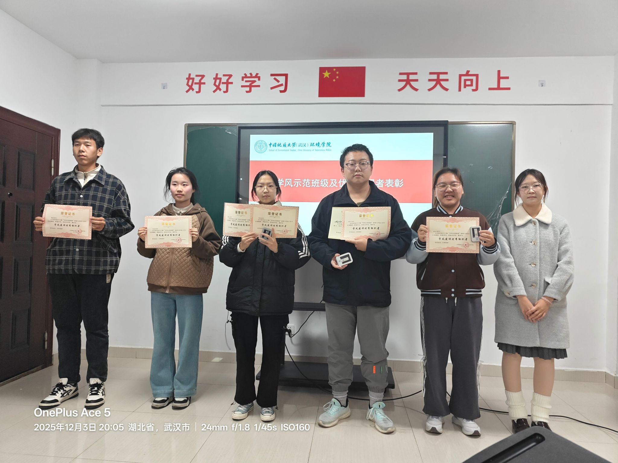 最后,会议现场揭晓学风示范班级评选结果,04H255班、046251班、046252班等3个班级获评“学风建设”示范班级,高博文、周怡佳、樊桂华、刘佳琪、赵钰茹、党其睿等6名同学获评“学风建设优秀组织者”,王瑞珺为获奖班级及个人颁发荣誉证书。