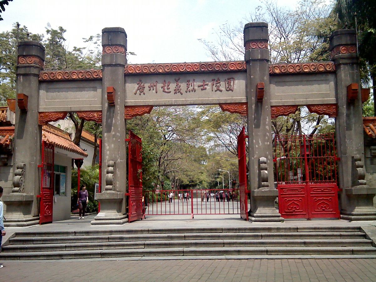 走出博物馆,来到广场。远处,一座巨大的石刻雕像耸然伫立,那是广州起义烈士纪念碑。雕像基座刻画的是战斗时的情景,碑文之上是被一只手紧握绑着象征起义的红飘带的步枪,象征着革命烈士不畏强暴、武装抗争的战斗精神。