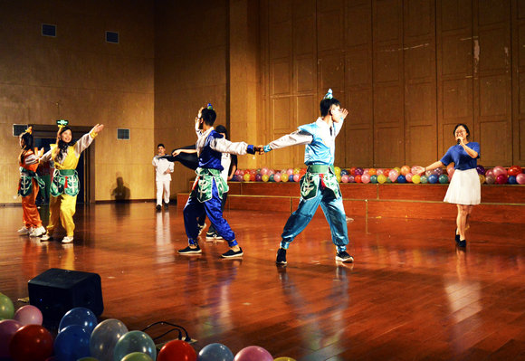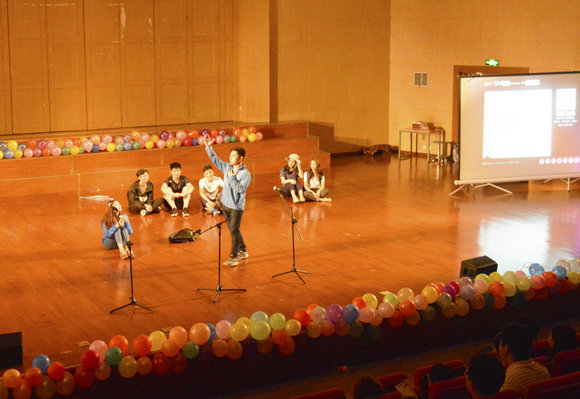 在毕委会导演组的精细筹备下,地下水科学与工程专业跳动的“尬”舞活力四射,实验班黄杨瑞的单簧管独奏给师生们送上了一场视听盛宴。从歌曲《告白气球》到舞台剧《太想爱你》,毕业生将对青春、爱情的理解,对老员工活的留恋不舍之情书写在舞台上。
